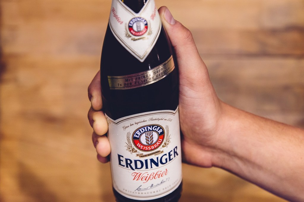 Muito conhecida no Brasil, a Erdinger é uma típica Weißbier (cerveja branca de trigo). Enquanto no Brasil ela é um produto importado e custa em média mais de R$ 20, na Alemanha ela sai por pouco mais de 1 €.